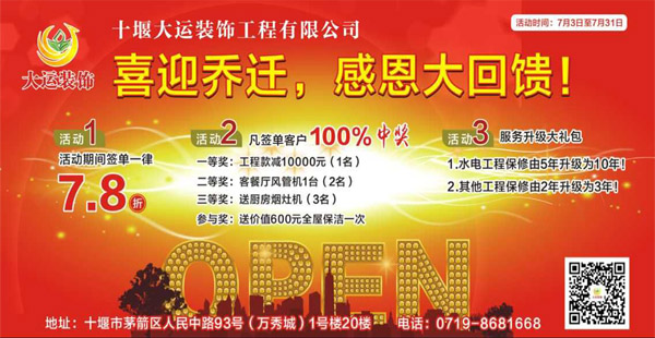 十堰大運裝飾萬秀城店喜迎喬遷,感恩大回饋!十堰裝飾網<span>十堰萬網傳媒</span><p>十堰網絡公司</p> <div>十堰網站設計</div> <div>十堰網站設計</div>
